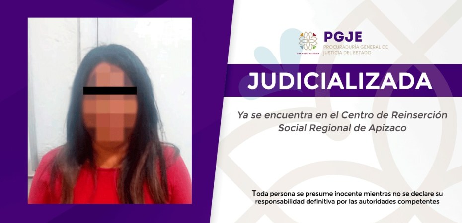 La tarde del domingo 10 de julio fue ingresada al Centro de Reinserción Social Regional de Apizaco, por lo que quedó a disposición del Juez de Control del Distrito Judicial de Guridi y Alcocer, quien procederá a resolver sobre la detención y la vinculación a proceso.