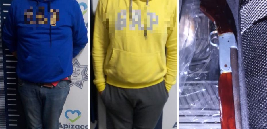 Gracias a la inmediata intervención de la policía municipal de Apizaco, fue posible el aseguramiento de 2 masculinos que detonaron un arma de fuego en vía pública, en la Comunidad de San Luis Apizaquito.