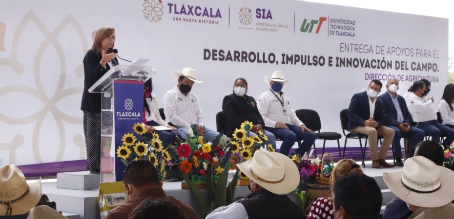 La gobernadora Lorena Cuéllar Cisneros encabezó la entrega de apoyos para el Desarrollo, Impulso e Innovación del campo tlaxcalteca a un total de 12 mil 813 beneficiarios a través de los programas que opera la Dirección de Agricultura de la Secretaría de Impulso Agropecuario (SIA), con un monto estatal a la fecha de 122 millones 970 mil 989 pesos.