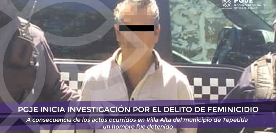 La Procuraduría General de Justicia del Estado (PGJE) inició la carpeta de investigación por el delito de feminicidio en contra de Francisco N., quien presuntamente cometió el delito la mañana del 17 de julio en la población de Villalta del municipio de Tepetitla.