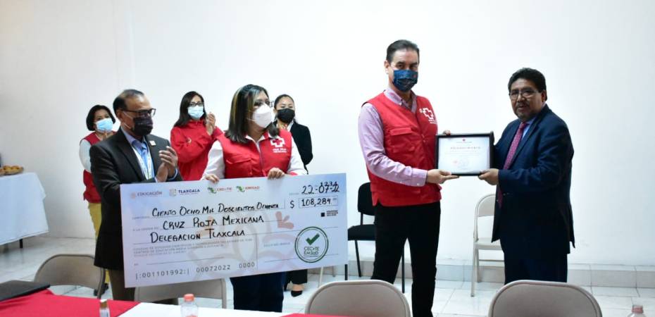 El Colegio de Estudios Científicos y Tecnológicos del Estado (CECyTE) y los Centros de Educación Media Superior a Distancia (EMSaD) hicieron posible la donación de 108 mil 284 pesos a la Cruz Roja Mexicana, delegación Tlaxcala, recaudados por parte de alumnos y directivos de este subsistema.