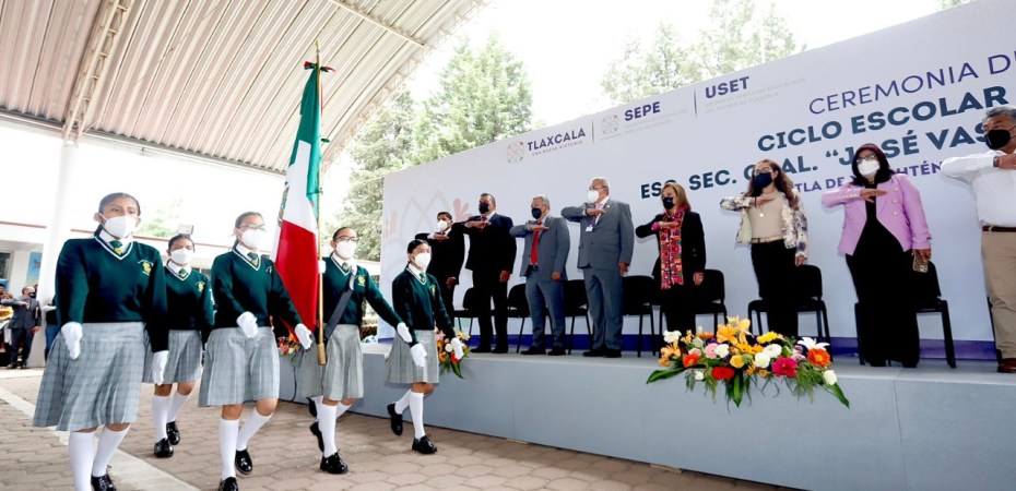 La gobernadora del estado, Lorena Cuéllar Cisneros, encabezó la ceremonia de clausura del ciclo escolar 2021-2022 en la Secundaria General “José Vasconcelos” del municipio de Papalotla. Ahí mismo dio el banderazo de salida a la distribución de un millón 665 mil 572 libros de texto para 260 mil 409 alumnos de preescolar, primaria y secundaria de la entidad.