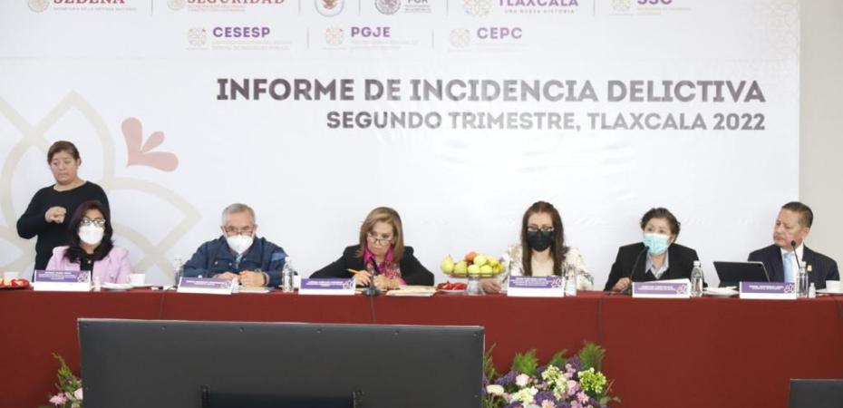 Cabe mencionar que en este segundo trimestre del año se obtuvieron resultados que impactaron positivamente, pues en comparación con Morelos, Colima, Nayarit y Aguascalientes, estados que poseen las mismas características que Tlaxcala, la entidad registró un control del repunte en homicidios dolosos, el robo a casa-habitación disminuyó a más del 50 por ciento, el robo a transeúnte se redujo a la mitad, el robo a negocio se encuentra por debajo de la media nacional y se tuvo una drástica disminución en materia de violencia familiar.