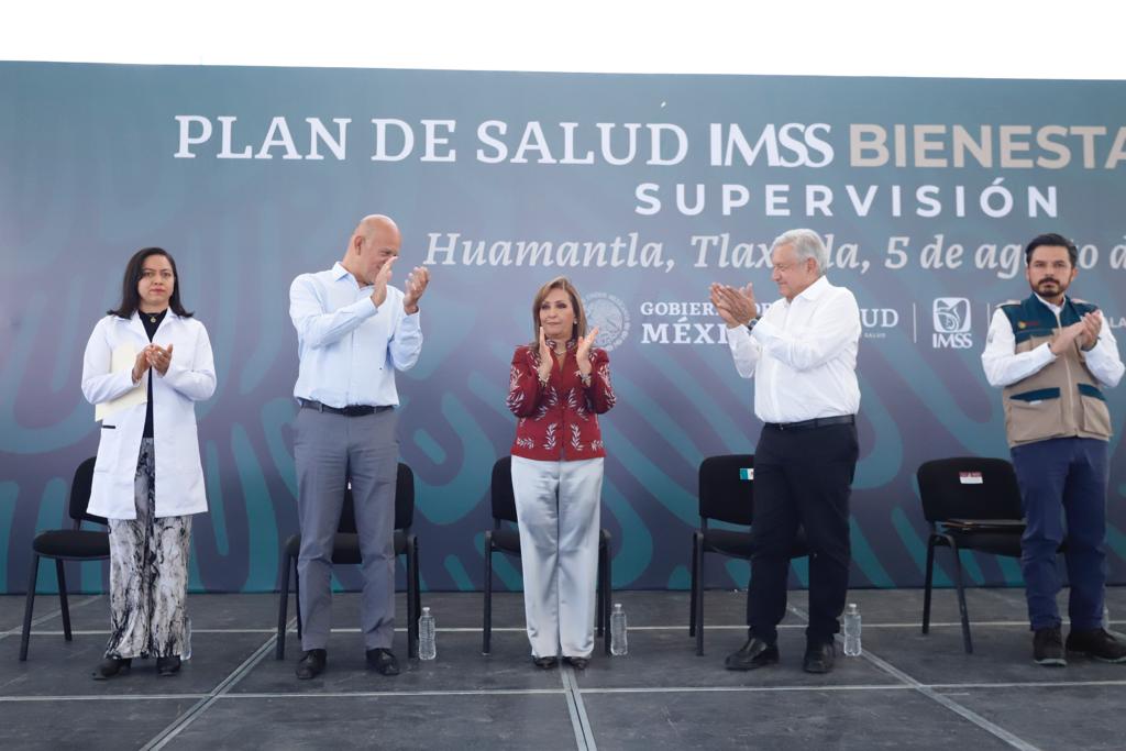 La gobernadora Lorena Cuéllar Cisneros acompañó al presidente de México, Andrés Manuel López Obrador, a supervisar el Plan de Salud IMSS-Bienestar que opera el Hospital de Huamantla, así como en el resto de nosocomios y centros de salud de la entidad, con el objetivo de mejorar la infraestructura, la cobertura de especialistas y el abasto de medicamentos, sobre todo a favor de quienes no cuentan con seguridad social.