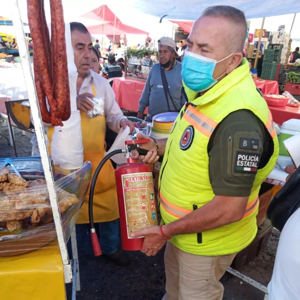 Asimismo, en el tianguis dominical ubicado en las inmediaciones de los municipios de La Magdalena Tlaltelulco y Chiautempan, los comerciantes visualizaron el trabajo de los elementos de la CEPC y se les recomendó -además de lo anterior- que los tanques estuvieran mínimo dos metros fuera del alcance de la ignición o del fuego y que la válvula del tanque se encuentre en buenas condiciones, ya que con el uso, algunos contenedores presentan daños en su válvula, tienen corrosión u óxido, además de abolladuras o tienen una base deforme o corroída.
