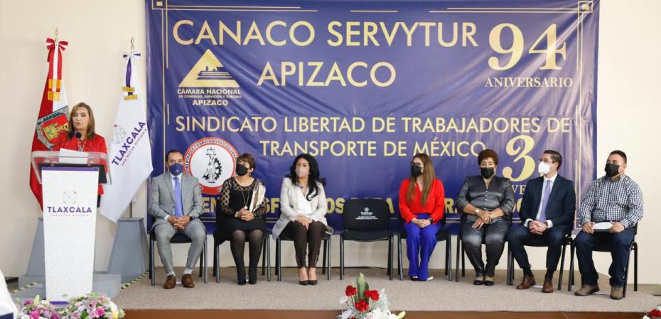 La gobernadora Lorena Cuéllar Cisneros asistió como invitada especial al evento conmemorativo del 94 aniversario de la Cámara Nacional de Comercio, Servicios y Turismo (Canaco-Servytur) del municipio de Apizaco, donde reiteró su compromiso de trabajar para convertir a Tlaxcala en un polo de desarrollo.