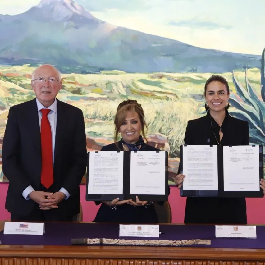 Con el objetivo de trabajar de manera coordinada en favor de las víctimas de trata de personas con fines de explotación sexual y en la prevención de la problemática en Tlaxcala, la gobernadora Lorena Cuéllar Cisneros y la directora de la Asociación Nacional contra la Trata Humana en la Sociedad (Anthus), Mariana Wenzel, firmaron un convenio de colaboración, en el cual fungió como testigo de honor el embajador de los Estados Unidos en México, Kenneth Lee Salazar.