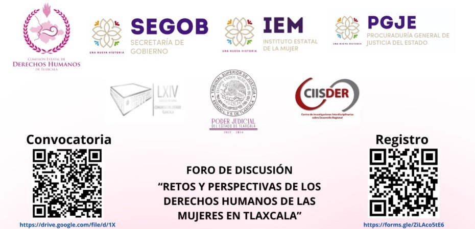 Todas las personas interesadas en participar en el foro podrán obtener la convocatoria y registro a través de las redes sociales de la Secretaría de Gobierno, la Comisión Estatal de Derechos Humanos (CEDH), el Instituto Estatal de la Mujer, la Procuraduría General de Justicia del Estado (PGJE), el Tribunal Superior de Justicia del Estado (TSJE) y del Centro de Investigaciones Interdisciplinarios sobre Desarrollo Regional (Ciisder).