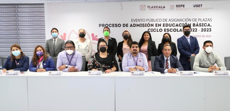 Autoridades de la Secretaría de Educación Pública del Estado (SEPE) y de la Unidad de Servicios Educativos de Tlaxcala (USET) realizaron el evento público de asignación de 54 plazas definitivas del proceso de admisión de nuevo ingreso a educación básica para el ciclo escolar 2022-2023.