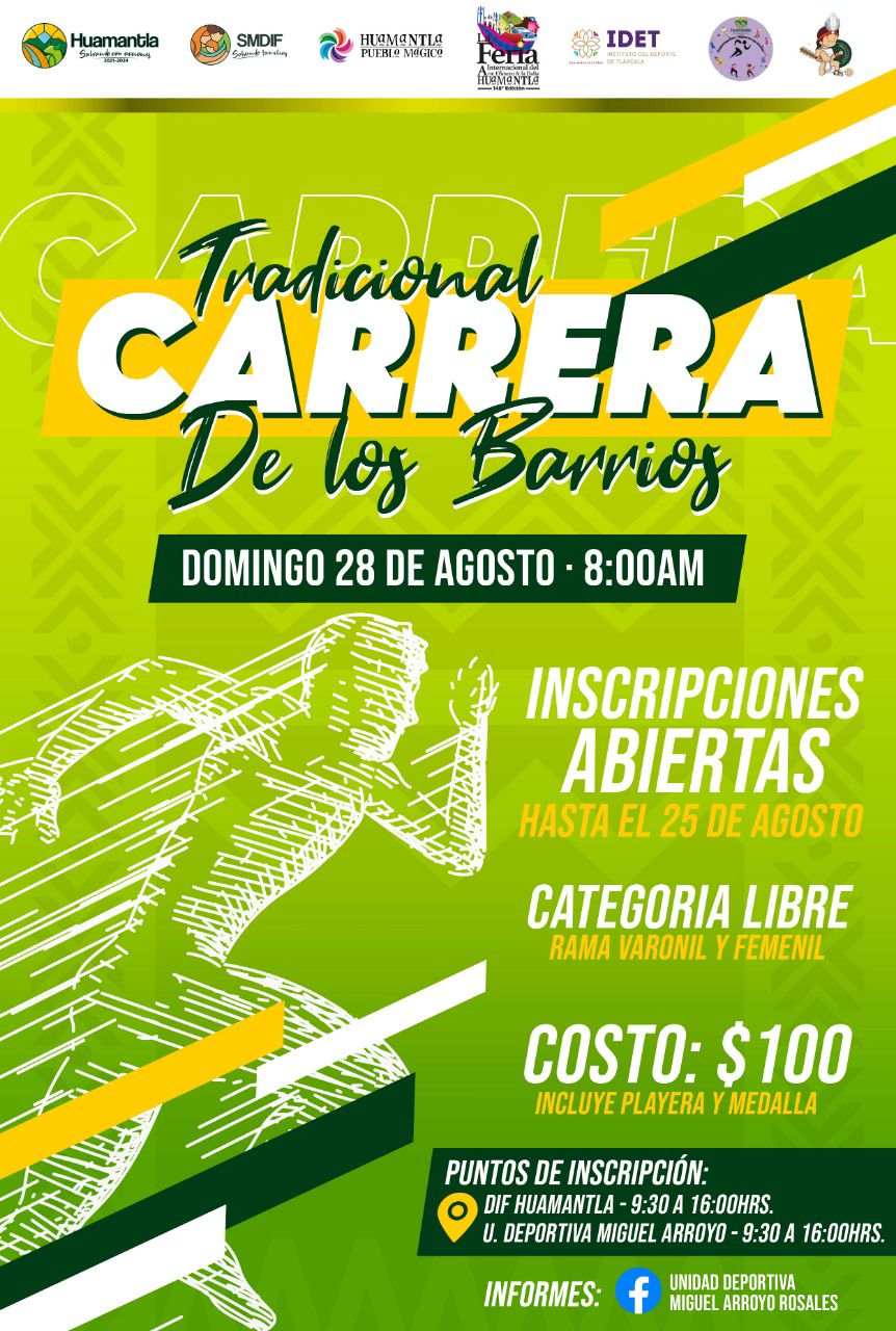 Las categorías serán libres en la rama femenil y varonil, las inscripciones están abiertas hasta el 25 de agosto, con un costo de $100 pesos, en la Unidad Deportiva “Miguel Arroyo Rosales”, así como en las oficinas del Sistema Municipal Para el Desarrollo Integral de la Familia (SMDIF) Huamantla; en un horario de 9:30 a 16:00 horas.