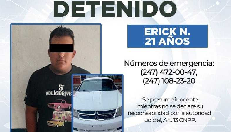 Los hechos ocurrieron sobre la calle Morelos con Victoria, cuando fue reportado el vehículo de la marca Dogde Blanco, tipo Avenger con placas de circulación de la Ciudad de México, pues seguía de manera sospechosa a otro particular.