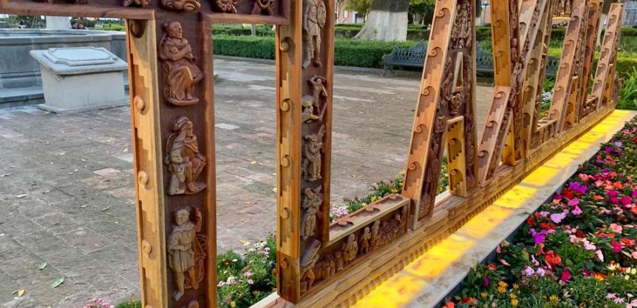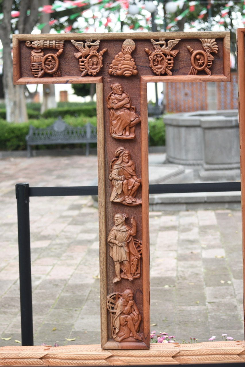 El artífice que elabora piezas de madera tallada, explicó que la obra que ahora es símbolo de identidad de Tlaxcala, fue inspirada en aspectos iconográficos de la historia, tradiciones, sitios emblemáticos y aspectos relevantes de la cultura tlaxcalteca.