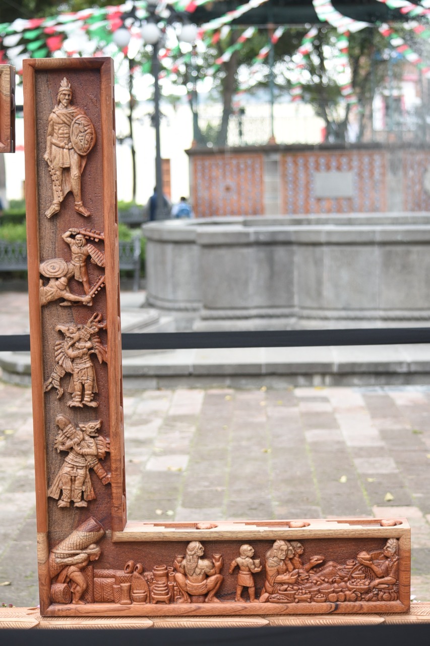 - Aspectos relevantes de la historia, tradiciones, personajes ilustres se observan en las letras talladas a mano por José Luis Vázquez, artesano originario de Tizatlán.