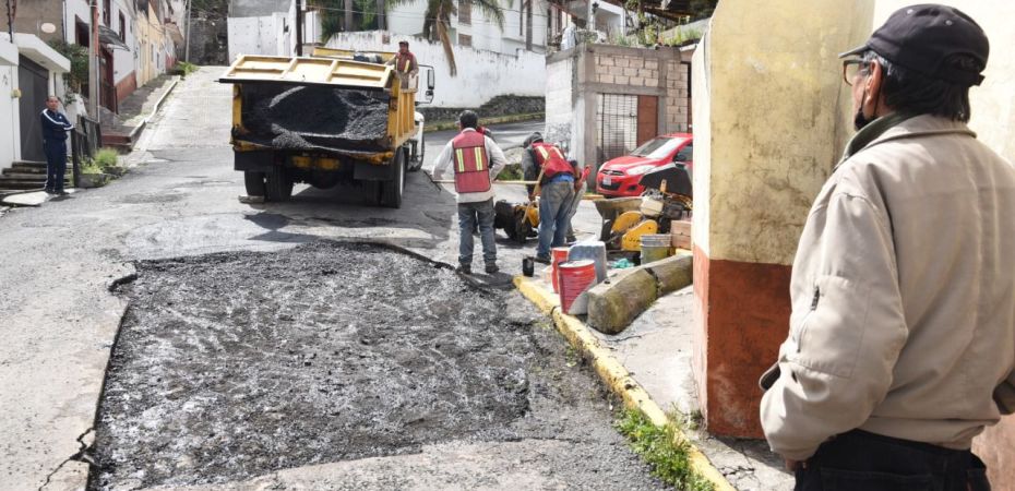 Luego de que la zona fuera debidamente asegurada, los trabajadores del Ayuntamiento procedieron a la rehabilitación de la superficie de rodamiento mediante el tendido y compactación de la mezcla asfáltica.