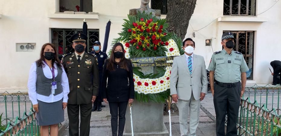 El presidente municipal de Tlaxcala, Jorge Corichi, encabezó la conmemoración del CLXXV aniversario luctuoso del coronel Felipe Santiago Tetlamatzin Saldaña, al pie del busto en su honor que se encuentra ubicado en el parque de San Nicolás en la ciudad de Tlaxcala.