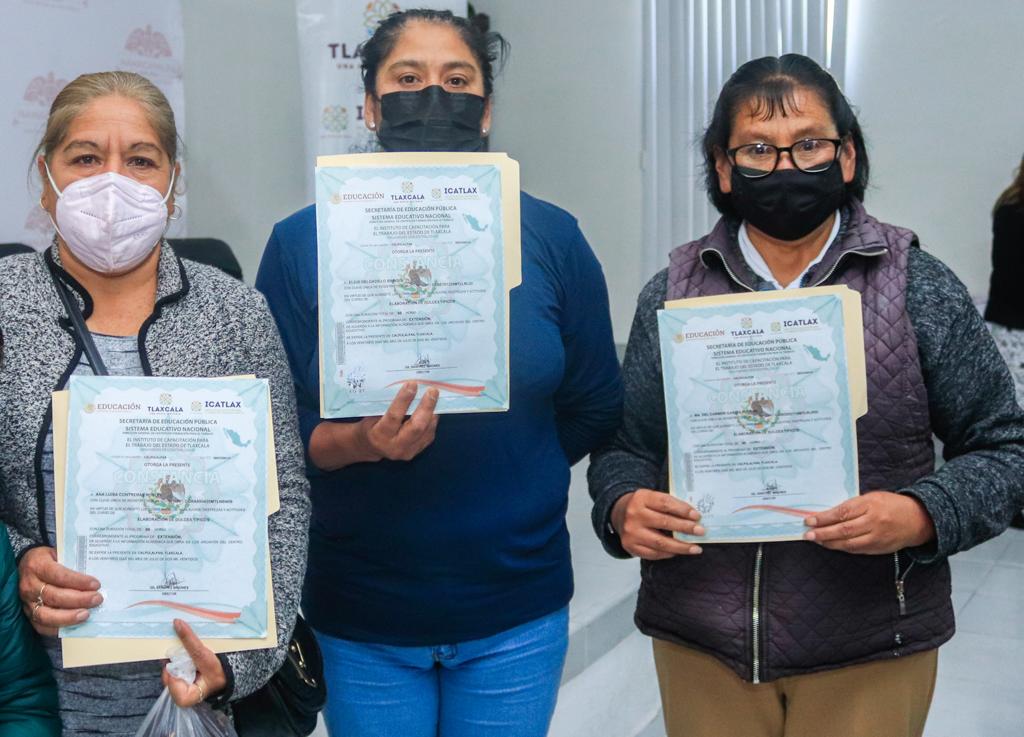 En Instituto de Capacitación para el Trabajo del Estado de Tlaxcala (Icatlax), en coordinación con las presidencias municipales de Nanacamilpa, Hueyotlipan y Benito Juárez, realizó la entrega de 367 constancias de los diferentes cursos que se imparten, tales como técnicas en corte de cabello, maquillaje profesional, repostería, técnicas en aplicación y diseño de uñas, entre otras.