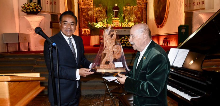 Como un presente que le gustó sobremanera, Olechowski recibió de manos del alcalde un bastón de madera tallada por artesanos de Tizatlán y en el cual se plasman hechos históricos de Tlaxcala.