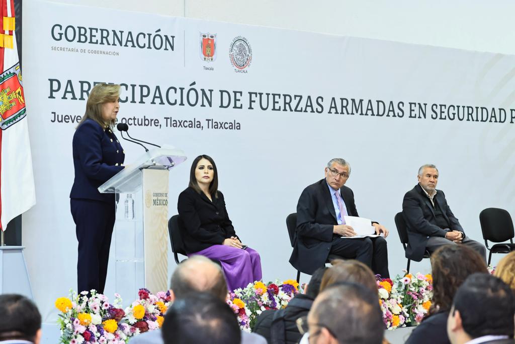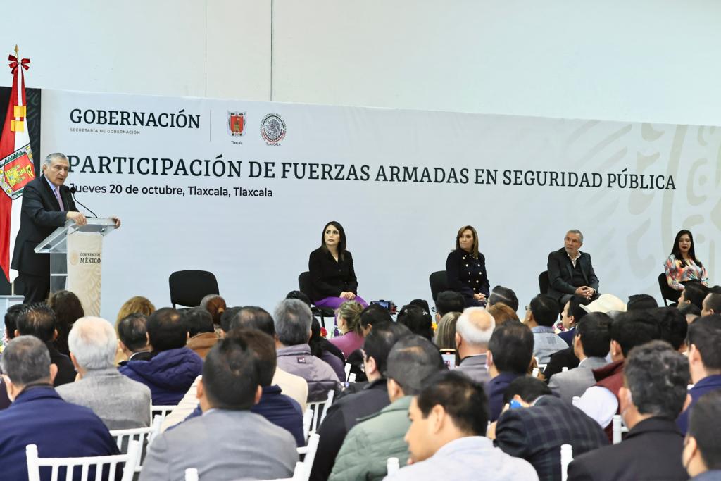 En su intervención, el titular de la Secretaría de Gobernación, Adán Augusto López Hernández reconoció el trabajo realizado por el gobierno de Cuéllar Cisneros en materia de seguridad, al señalar que Tlaxcala “es de los pocos estados, si no es que el único, donde hay menor presencia de las fuerzas federales que de policías estatales y municipales”.