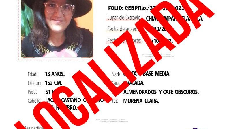 La Comisión Estatal de Búsqueda de Personas había emitido el día de ayer un boletín indicando que la adolescente se extravió en el municipio de Chiautempan.