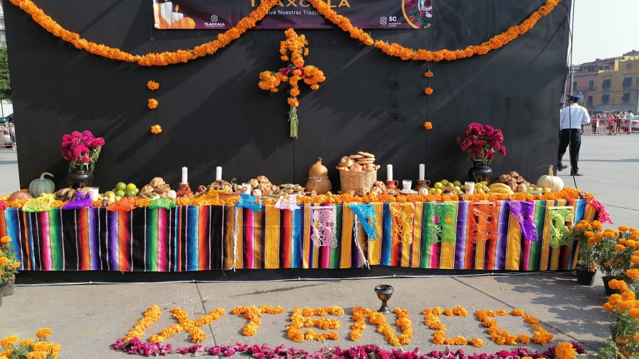 Una delegación de siete artesanos del estado de Tlaxcala participa en la ofrenda monumental de la plancha del zócalo capitalino, con motivo de la celebración del Día de Muertos, festividad reconocida por la UNESCO como Patrimonio Cultural Inmaterial, a invitación del gobierno de la Ciudad de México, la cual se podrá visitar del día 28 de octubre al 2 de noviembre, con horario de 11:00 a 17:00 horas.