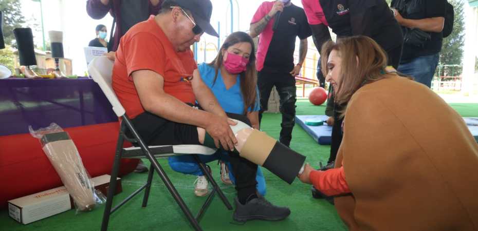 La gobernadora Lorena Cuéllar Cisneros realizó la entrega de prótesis de pierna a beneficiarios de la Secretaría de Bienestar, como parte del Programa de Ayudas Funcionales para Personas con Discapacidad de la dependencia estatal.