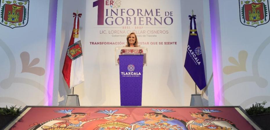 La gobernadora Lorena Cuéllar Cisneros rindió su primer informe de gobierno, donde presentó los avances obtenidos a un año de arduo trabajo en los rubros de salud, infraestructura, bienestar social, campo, medio ambiente, educación, cultura, seguridad, desarrollo económico y turismo, que contemplan los ejes del Plan Estatal de Desarrollo (PED) 2021-2027.