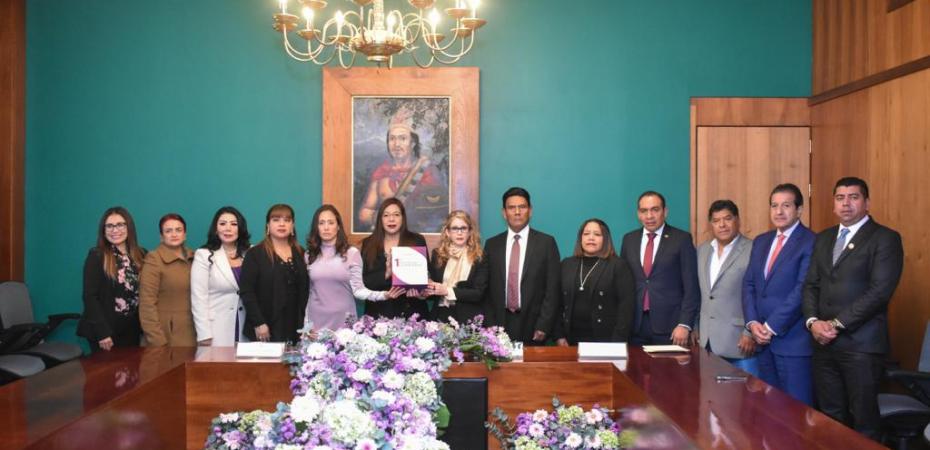 Las presidentas de la Mesa Directiva del Congreso del Estado y de la Junta de Coordinación y Concertación Política (JCCP), las diputadas Leticia Martínez Cerón y Marcela González Castillo, respectivamente, recibieron el Primer Informe de Gobierno del Poder Ejecutivo, que encabeza la gobernadora, Lorena Cuéllar Cisneros.
