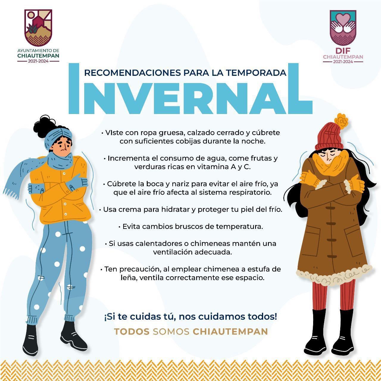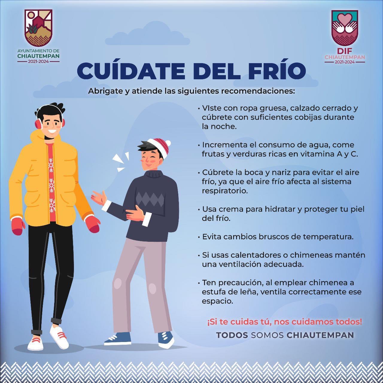 El Ayuntamiento de Chiautempan emite las siguientes recomendaciones para prevenir incidente por las bajas temperaturas propias de la temporada invernal.