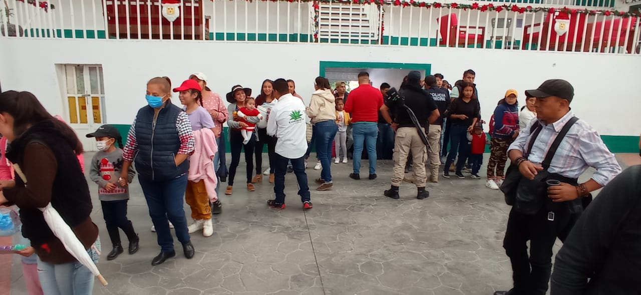 Minutos antes de las 12 del día se abrieron las puertas de la Presidencia Municipal de Altlzayanca para que de manera ordenada ingresaran tanto niños y padres de familia; para los infantes se les dividió en dos filas, una de niños y otra de niñas, para poder recibir un presente, un trozo de Rosca de Reyes, una bebida y posteriormente acceder a la Plaza de Toros «La Morenista», para disfrutar de un espectáculo cómico taurino y una demostración de los alumnos de la escuela Taurina de la demarcación.