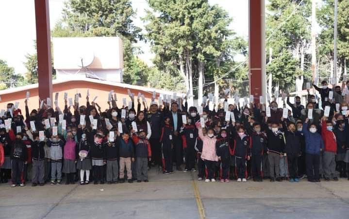 Acompañado de la Directora de esta institución educativa, Leodegaria Cova Torres; del Delegado de Tlapancalco, Marco Valencia; de Maribel Pérez, Coordinadora de Bienestar Humano del municipio de Tlaxcala, profesores y alumnos, el alcalde capitalino entregó a niños y niñas, sus gafetes que los identifican como vigilantes del medio ambiente, así como un reconocimiento a la escuela por su participan en este programa.
