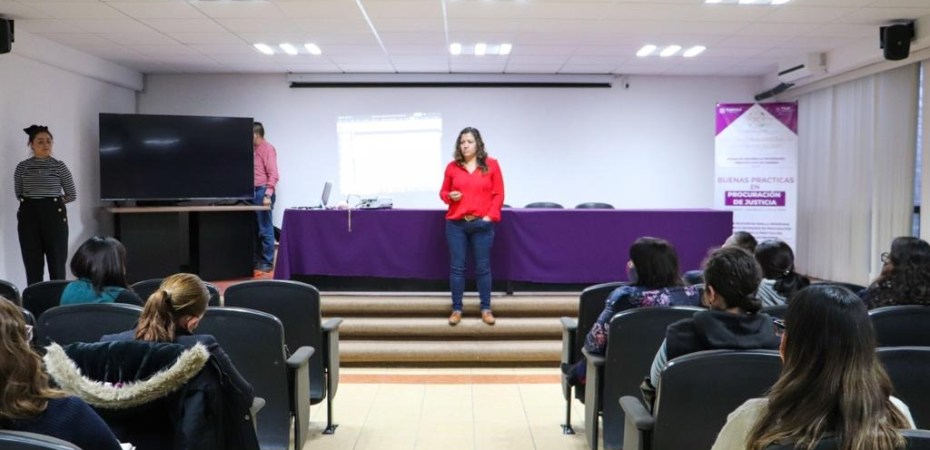 Durante el taller “Buenas prácticas en procuración de justicia”, personal de servicios periciales adscritos a la PGJE explicaron los temas “Sensibilización humana en casos de violencia contra las mujeres” y “Dictamen pericial en ginecología y proctológico en la audiencia de juicio oral”.