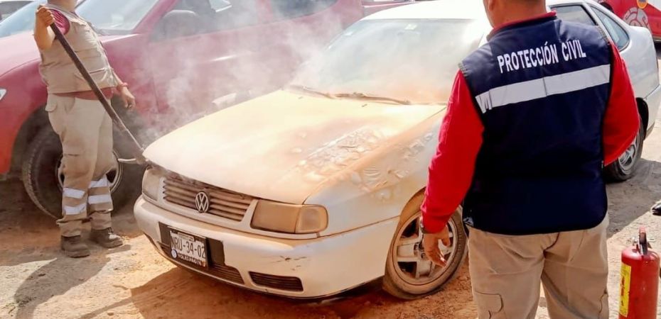 Gracias al trabajo coordinado y respuesta inmediata de los elementos de la Coordinación de Protección Civil de Huamantla, se evitó que un vehículo que se encontraba estacionado en el Lienzo Charro se incendiara.