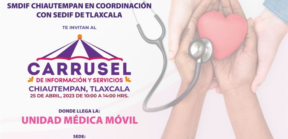 El Ayuntamiento de Chiautempan informa a la población sobre la instalación del «Carrusel de Información y Servicios», mismo que trae consigo a la Unidad Médica Móvil, que ofrecerá diferentes atenciones a la población, gracias al respaldo del Sistema Estatal para el Desarrollo Integral de la Familia (Sedif).