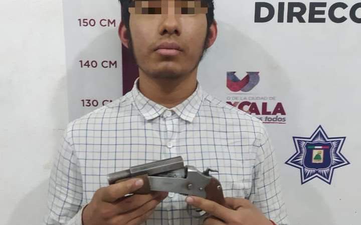 Elementos de la Dirección de Seguridad Ciudadana y Movilidad del Municipio de Tlaxcala detuvieron a un masculino por portación de arma de fuego y cartuchos, luego de levantarle una infracción por infringir el reglamento de tránsito municipal.