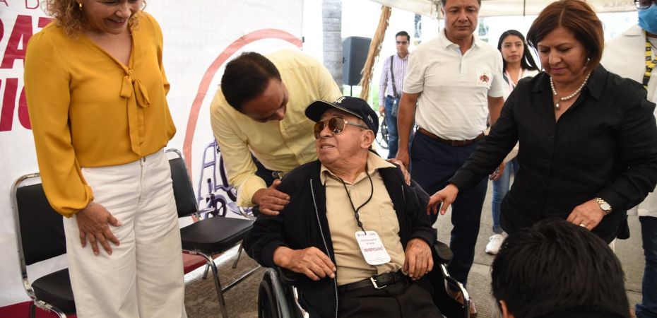 De esta forma, se entregaron: 43 sillas de ruedas estándar, dos bastones para invidentes; una andadera infantil 2 ruedas; tres muletas axilares; 36 bastones 4 puntos; sillas de ruedas uso rudo, 24 bastones de un solo punto y 10 andaderas estándar adulto.