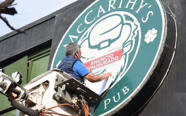 Personal del Ayuntamiento de Tlaxcala colocó sellos de suspensión de actividades en el establecimiento mercantil denominado “McCarthy´s Irish Pub”, ubicado sobre la Avenida Juárez, Colonia Centro.