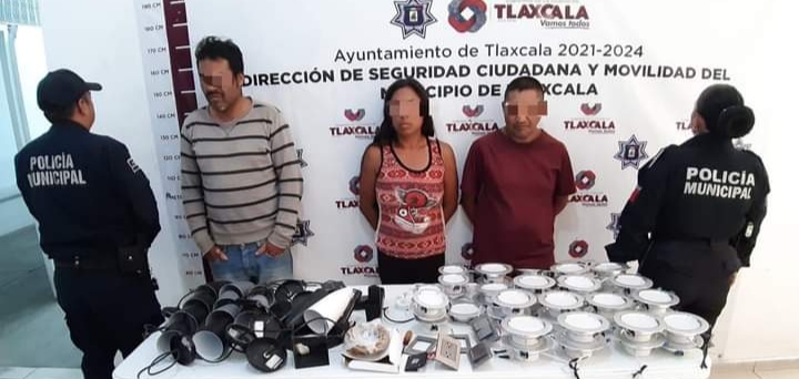 Policías municipales de Tlaxcala aseguraron a tres personas -dos hombres y una mujer- en la comunidad de San Buenaventura Atempan, señalados por el delito de robo a casa habitación y a negocios.