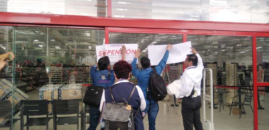 La Comisión Estatal para la Protección contra Riesgos Sanitarios de Tlaxcala (Coeprist) suspendió un centro comercial ubicado en la capital del estado, después de que personal de las tres gerencias regionales de Tlaxcala, Huamantla y Apizaco realizaron una inspección en el lugar la tarde de este 10 de julio.