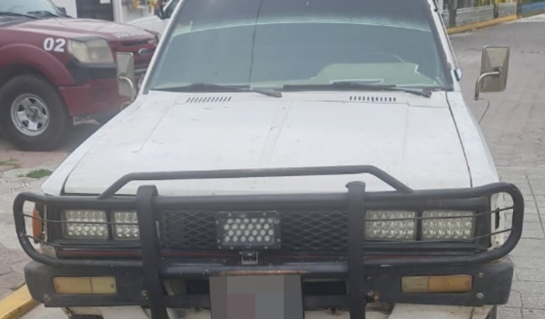 Elementos de la Policía de Investigación adscritos a la Procuraduría General de Justicia del Estado (PGJE) pusieron a disposición del agente del Ministerio Público del fuero común una camioneta Datsun, tipo Pick-Up, doble cabina, modelo 1984, color blanco con negro, que contaba con reporte de robo en el estado de Querétaro.