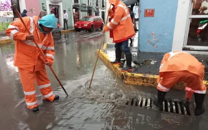 Personal de distintas áreas del municipio capitalino, realizaron labores de limpieza, seguridad, vialidad en calles y avenidas del Centro Histórico y comunidades que se vieron afectadas tras la atipica precipitación.