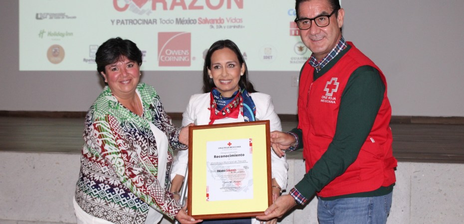 La presidenta municipal de Tlaxcala, Maribel Pérez Arenas, recibió a nombre del Ayuntamiento capitalino, el reconocimiento de la delegación en la entidad, de la Cruz Roja Mexicana, por la participación y colaboración en la carrera “Todo México Salvando Vidas”, realizada el pasado 10 de septiembre.