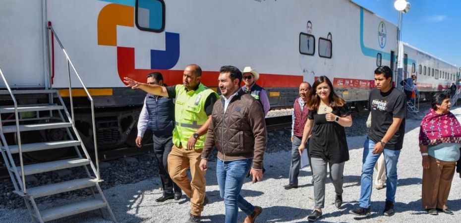 Acompañado de autoridades estatales le informaron que el “Tren de la Salud” atiende a 500 personas diariamente con consultas de medicina general y de especialidades sin costo alguno.