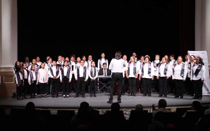 Fue en el concierto de gala de este día, realizado en el Teatro Xicohtécatl, donde el Coro de Tlaxcala Capital, integrado por niños, jóvenes y adultos, mostró el talento en sus interpretaciones, que fueron aplaudidas de manera especial por los asistentes.
