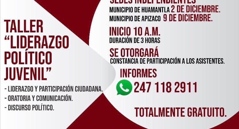 Este taller tiene como objetivo formar a los jóvenes que así lo deseen, en los temas de liderazgo y participación ciudadana, oratoria y comunicación y discurso político, temas que serán impartidos por ponentes de alto nivel.