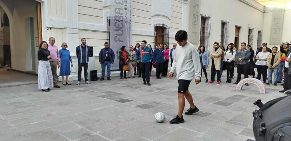 Rodrigo Ímaz, es artista plástico, señaló que esta exposición es un conjunto de 100 balones convertidos en macetas, que en su momento fueron balones funcionales, además se cuenta con un balón de mármol que está tallado a manera de un balón ponchado; la exposición ha recorrido diferentes lugares como: El Museo de la Autonomía de la Universidad Nacional Autónoma de México (UNAM), posteriormente se situó en el Centro Cultural de España y de ahí se desplazó a la casa del Libro de la UNAM en la colonia Roma y ahora aquí en Tlaxcala.