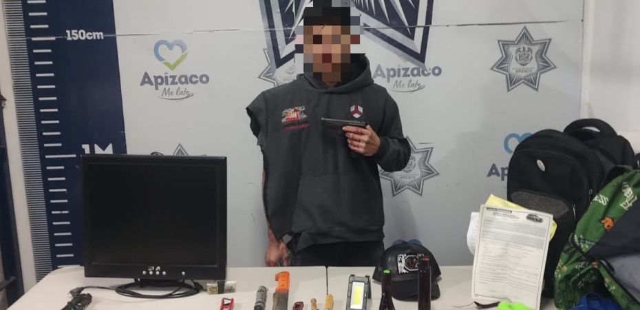 Oficiales de la Dirección de Seguridad Pública Municipal, Vialidad y Transporte de Apizaco, aseguraron a cinco individuos, entre ellos cuatro menores de edad, por su presunta participación en un caso de allanamiento de morada.