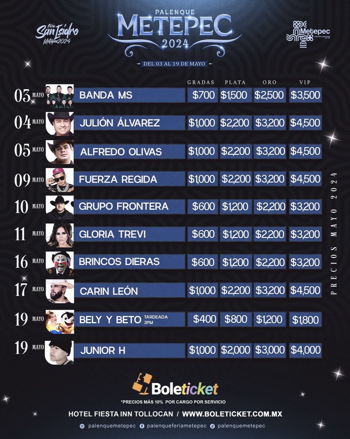 Como cada año, el comité organizador se esfuerza en llevar variedades de gran peso a un recinto lleno de tanta tradición como lo es el Palenque Metepec.