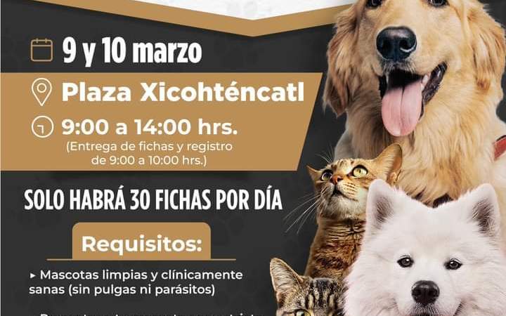 El ayuntamiento de Tlaxcala realizará este sábado 9 y domingo 10 de marzo, una jornada de esterilización gratuita de perros y gatos, con el objetivo de contribuir al bienestar animal.