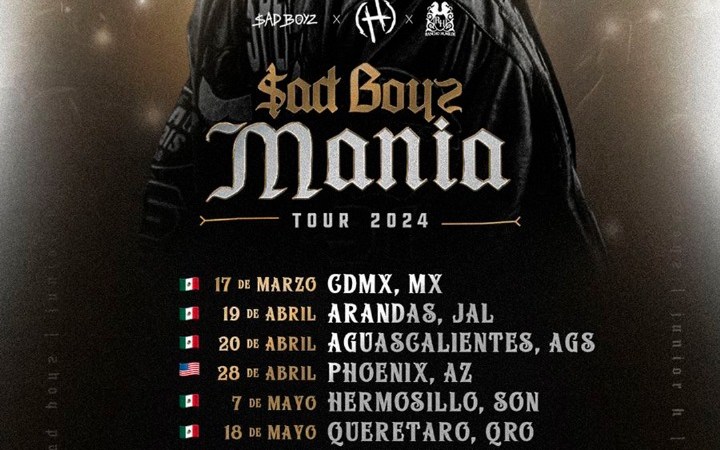 JUNIOR H, uno de los artistas con mayor visibilidad dentro del género de música mexicana urbana, comienza su gira de conciertos «$AD BOYZ MANÍA – TOUR 2024» por Norte y Centro América. Producida por RANCHO HUMILDE, la gira estará presente en dieciocho ciudades diferentes de México, Estados Unidos, El Salvador, Costa Rica y Guatemala.
