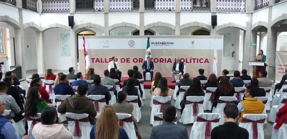 Este viernes, en el Patio Vitral del Recinto Legislativo local, el diputado Rubén Terán Águila, la Fundación Reforma Ideológica A.C., y la Fundación Cultural José Muñoz Cota Ibañez, A.C., desarrollaron la primera sesión del Taller de Oratoria Política.